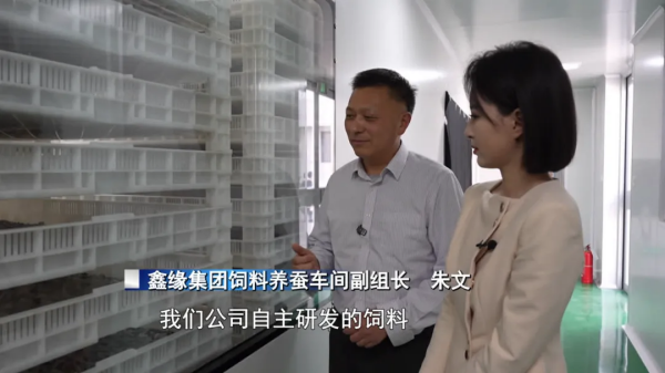 鑫緣集團飼料養(yǎng)蠶車間副組長朱文:傳統(tǒng)的桑葉受自然環(huán)境的限制,我們公司自主研發(fā)的飼料,每天都可以養(yǎng)蠶,產(chǎn)量也高了。