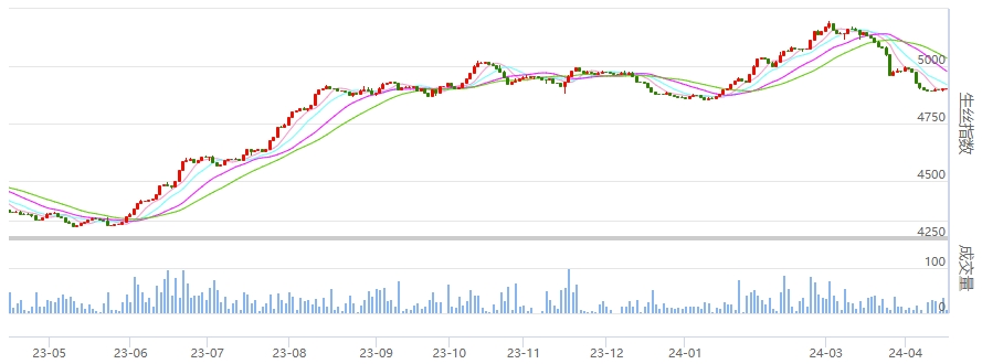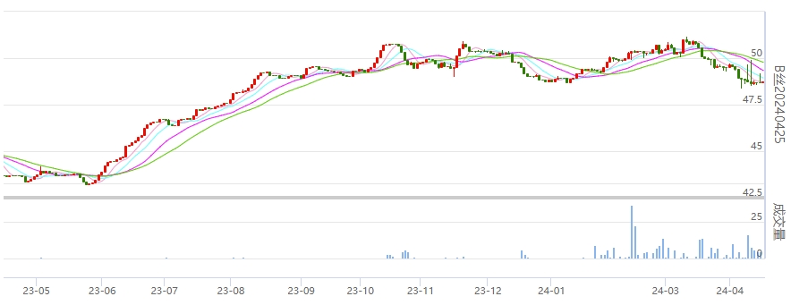 今日(2024年04月17日,周三)中國繭絲綢交易市場生絲指數(shù)微漲0.05%收于4904.50點(diǎn)。B絲(商檢4A級生絲):240425合約上漲0.03萬元報(bào)收于48.75萬元;240925合約上漲0.03萬元報(bào)收于49.23萬元;250325合約下跌0.15萬元報(bào)收于49.77萬元。