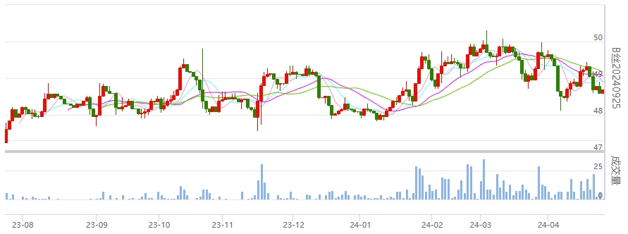 今日(周四)盤面各遠近生絲合約價格維持小幅波動。