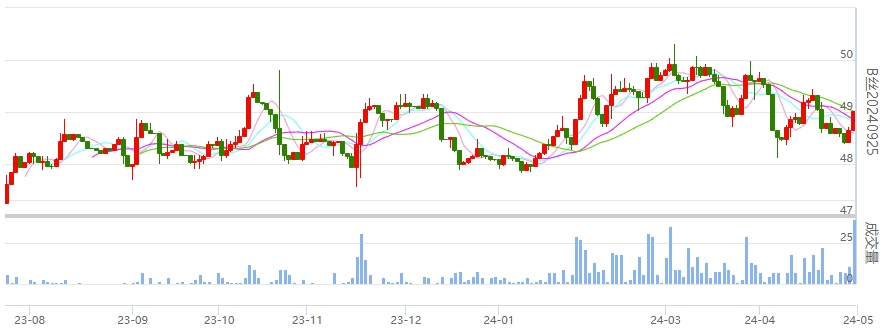 今日(2024年04月30日,周二)中國繭絲綢交易市場生絲指數(shù)上漲0.53%報于4880.84點。B絲(商檢4A級生絲):240525合約上漲0.33萬元報收于48.66萬元;240925合約上漲0.36萬元報收于49.02萬元;250325合約上漲0.33萬元報收于49.14萬元。