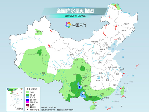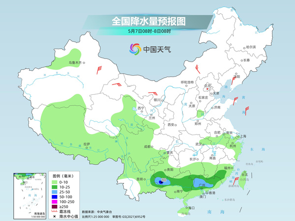 明天,云南東部、貴州南部、湖南南部、江西南部、福建南部、廣西北部、廣東北部等地部分地區(qū)有中到大雨,其中,廣西西北部局地有暴雨。