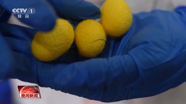 陳玉銀:一般從桑葉吃進去,到最后絲吐出來金黃色,它是有很多基因控制的,所以我們做這個事情還沒那么容易。有時候有的蠶寶寶它金黃色的血液,但它吐出的蠶絲還是白的,所以這是個非常復(fù)雜的過程。