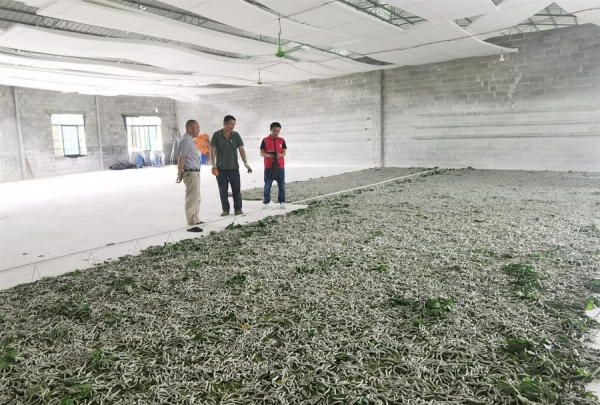 “目前全年共育小蠶的能力已達(dá)到2.8萬(wàn)張標(biāo)準(zhǔn)張以上,今年前三批小蠶已全部發(fā)放完畢?!瘪≠t介紹,在推動(dòng)產(chǎn)業(yè)的升級(jí)和發(fā)展中,自己獲得了設(shè)施桑蠶項(xiàng)目支持,引進(jìn)了大功率切葉機(jī)、消毒機(jī)、抽風(fēng)機(jī)及低溫貯葉室空調(diào)等設(shè)備,成功轉(zhuǎn)型為工廠化、專業(yè)化、標(biāo)準(zhǔn)化的小蠶共育主體,養(yǎng)出的小蠶也備受市場(chǎng)歡迎。