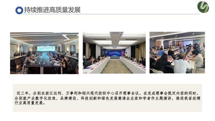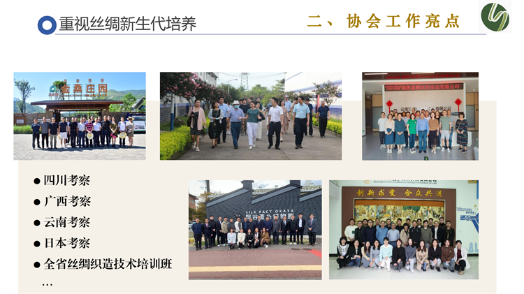 吳會長還就搭建技能培養(yǎng)、考察學習。對話交流、傳承引領(lǐng)的提升平臺多舉措積極培育絲綢新生代成長、過產(chǎn)業(yè)數(shù)字化改造、品牌建設(shè)、科技創(chuàng)新和綠色發(fā)展持續(xù)推進高質(zhì)量發(fā)展等方面分享了協(xié)會的亮點工作。