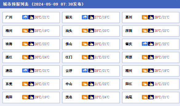 未來三天(5月9日至11日),廣東西部、北部以及珠江三角洲一帶多分散性雷雨天氣,局地可能出現(xiàn)大雨或暴雨,公眾外出需注意交通安全。