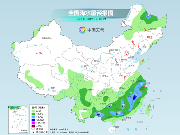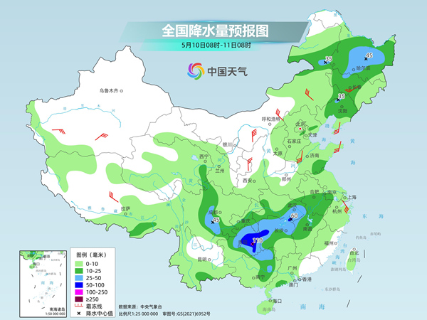 受暖濕氣流和冷空氣共同影響,未來三天,南方新一輪較強(qiáng)降水開啟,降雨重心主要位于貴州到江南、華南北部一帶,部分地區(qū)有大到暴雨,局地大暴雨,主要降雨時(shí)段集中在10日夜間至11日。同時(shí),今明天,華北、黃淮、東北等地有陣雨或雷陣雨,部分地區(qū)有強(qiáng)對(duì)流天氣。