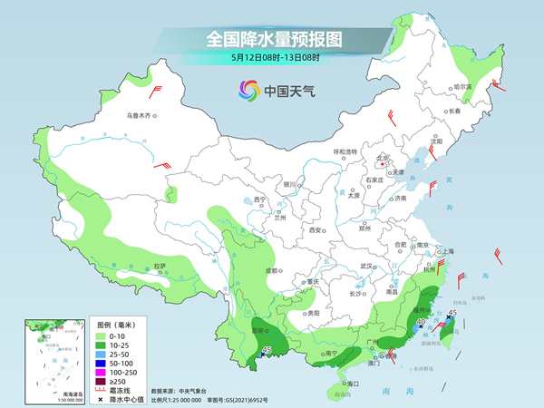后天,浙江南部、福建中東部、廣東中南部、廣西南部、云南中東部、臺(tái)灣島等地的部分地區(qū)有中到大雨。