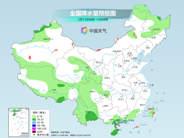 后天,內(nèi)蒙古東北部、東北地區(qū)中北部、新疆南疆盆地和北部、西藏北部和東部、西北地區(qū)中部、西南地區(qū)大部、華南中南部、臺(tái)灣島等地部分地區(qū)有小到中雨,其中,廣東南部沿海等地部分地區(qū)有大雨(25~30毫米)。