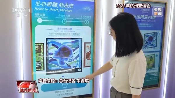 按照提示步驟,選擇心儀的款式以后,就能生成一塊獨(dú)一無二的絲巾。下單以后,旁邊的機(jī)器就會(huì)自動(dòng)開始工作。最快兩個(gè)小時(shí)體驗(yàn)者就能拿到自己定制的一款“亞運(yùn)風(fēng)”絲綢。