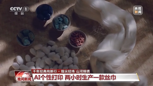 就這樣,從最初研發(fā)出可以吐金絲的蠶,到后來可以吐出粉絲、綠絲、橙絲、藍(lán)絲。絲綢再次驚艷世人。彩蠶吐絲、免水洗印染、人工智能個(gè)性設(shè)計(jì),絲綢行業(yè)的華麗轉(zhuǎn)身,讓每個(gè)人都能夠成為絲綢設(shè)計(jì)師,讓復(fù)雜的流程變得立等可取。新質(zhì)生產(chǎn)力不但帶來全新體驗(yàn),也大幅提升行業(yè)的生產(chǎn)效率。