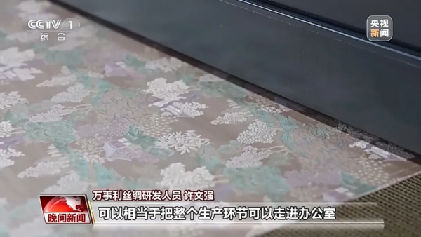 近日,央視一套(CCTV1)的《晚間新聞》對浙江企業(yè)萬事利絲綢進(jìn)行了時(shí)長8分鐘的專題報(bào)道,展示企業(yè)發(fā)展新質(zhì)生產(chǎn)力的過程中,通過技術(shù)創(chuàng)新、科技應(yīng)用,為傳承千年的絲綢乃至整個(gè)紡織行業(yè)帶來革新。以下為報(bào)道內(nèi)容:
