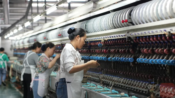 5月10日,在四川新絲路繭絲綢有限公司生產(chǎn)車間里,機(jī)器轟鳴,12組自動(dòng)繅絲生產(chǎn)線飛速運(yùn)轉(zhuǎn),工人們選繭、繅絲、捆絲一派繁忙,企業(yè)正開足馬力忙生產(chǎn),不久之后,這批高質(zhì)量繭絲將通過上海港出口,運(yùn)往羅馬尼亞、意大利等地。