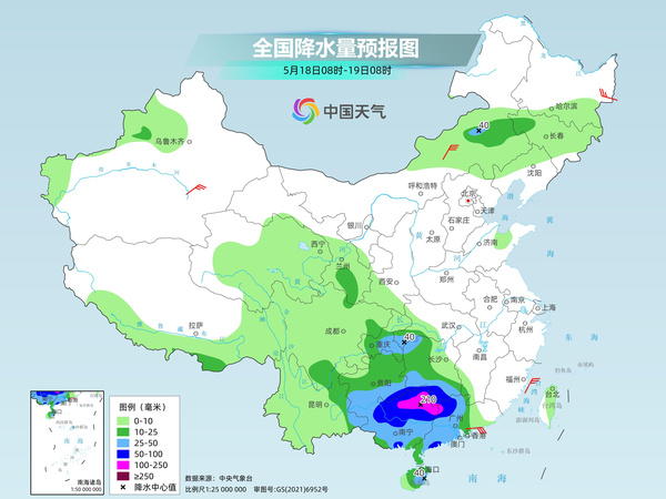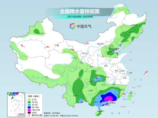 后天,天津、湖北南部、云南東南部、江南南部、華南大部等地部分地區(qū)有大到暴雨,其中,廣東中西部部分地區(qū)及粵港澳大灣區(qū)有大暴雨,局地特大暴雨。