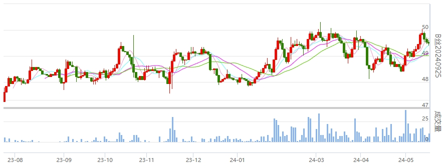 今日(2024年05月17日,周五)中國(guó)繭絲綢交易市場(chǎng)生絲指數(shù)下跌0.11%報(bào)于4950.47點(diǎn),本周生絲指數(shù)上漲0.65%。B絲(商檢4A級(jí)生絲):240525合約下跌0.06萬(wàn)元報(bào)收于49.05萬(wàn)元;240925合約下跌0.03萬(wàn)元報(bào)收于49.50萬(wàn)元;250325合約下跌0.03萬(wàn)元報(bào)收于49.98萬(wàn)元。