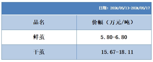 根據(jù)本周蠶繭報(bào)價(jià)按照指數(shù)方案形成的基準(zhǔn)品價(jià)格區(qū)間