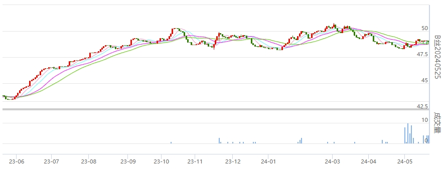 今日(2024年05月22日,周三)中國繭絲綢交易市場(chǎng)生絲指數(shù)下跌0.23%報(bào)于4939.59點(diǎn)。B絲(商檢4A級(jí)生絲):240525合約下跌0.09萬元報(bào)收于48.99萬元;240925合約下跌0.24萬元報(bào)收于49.29萬元;250325合約下跌0.21萬元報(bào)收于49.83萬元。