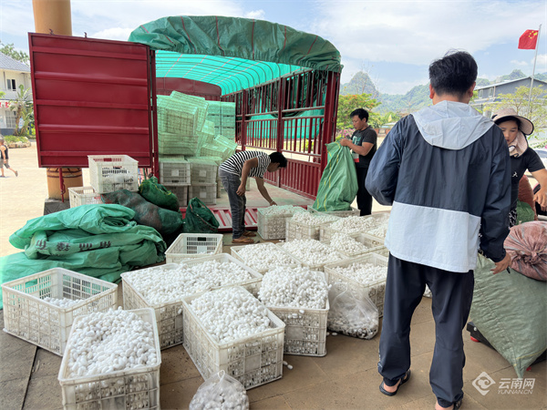 走進(jìn)瀾滄縣竹塘鄉(xiāng)蠶繭收購(gòu)點(diǎn),蠶農(nóng)們正忙著把一袋袋潔白的蠶繭運(yùn)送到這里售賣(mài),工作人員根據(jù)蠶繭品質(zhì)劃分等次進(jìn)行驗(yàn)貨、定價(jià)、過(guò)秤、開(kāi)票、結(jié)算、裝車(chē)……收購(gòu)點(diǎn)里隨處可見(jiàn)蠶農(nóng)們忙碌的身影。
