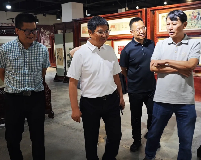 5月29日下午,四川省文旅廳張靜處長、一級調(diào)研員劉朝祿,成都市文廣旅局非遺處張擎處長帶領(lǐng)北京泡泡瑪特公司一行10余人到錦門調(diào)研蜀錦織造技藝和成都漆藝等非遺情況。此次主要考察非遺工藝的制作過程及背后的文化歷史和以往的跨界合作案例并且評估非遺工藝是否可以用于盲盒手辦等大貨生產(chǎn)。新都區(qū)文廣體旅局黨組成員、副局長陳小忠,文化科科長程露瑩,四川潤茂絲綢有限公司董事長吳金良陪同考察調(diào)研。