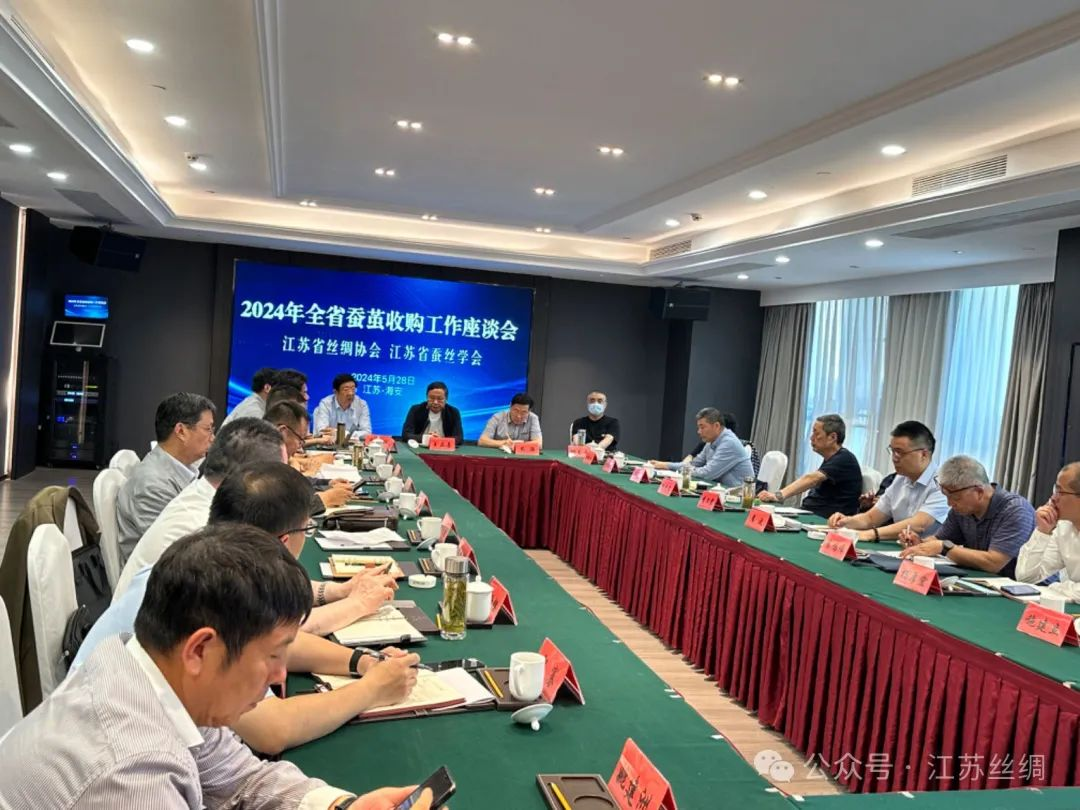春繭收購(gòu)在即,為認(rèn)真做好全省蠶繭收購(gòu)工作,加強(qiáng)蠶繭收購(gòu)協(xié)調(diào)機(jī)制,5月28日,江蘇省絲綢協(xié)會(huì)、江蘇省蠶絲學(xué)會(huì)在海安聯(lián)合召開(kāi)2024年全省蠶繭收購(gòu)工作座談會(huì),省絲綢協(xié)會(huì)王正喜會(huì)長(zhǎng)、省蠶絲學(xué)會(huì)周謙理事長(zhǎng)、江蘇省蠶種所許剛主任、省內(nèi)各地蠶桑指導(dǎo)站負(fù)責(zé)人、有關(guān)蠶桑、繅絲、織造生產(chǎn)企業(yè)負(fù)責(zé)人、省、市絲綢協(xié)會(huì)(商會(huì))有關(guān)人員共30余人參加會(huì)議。