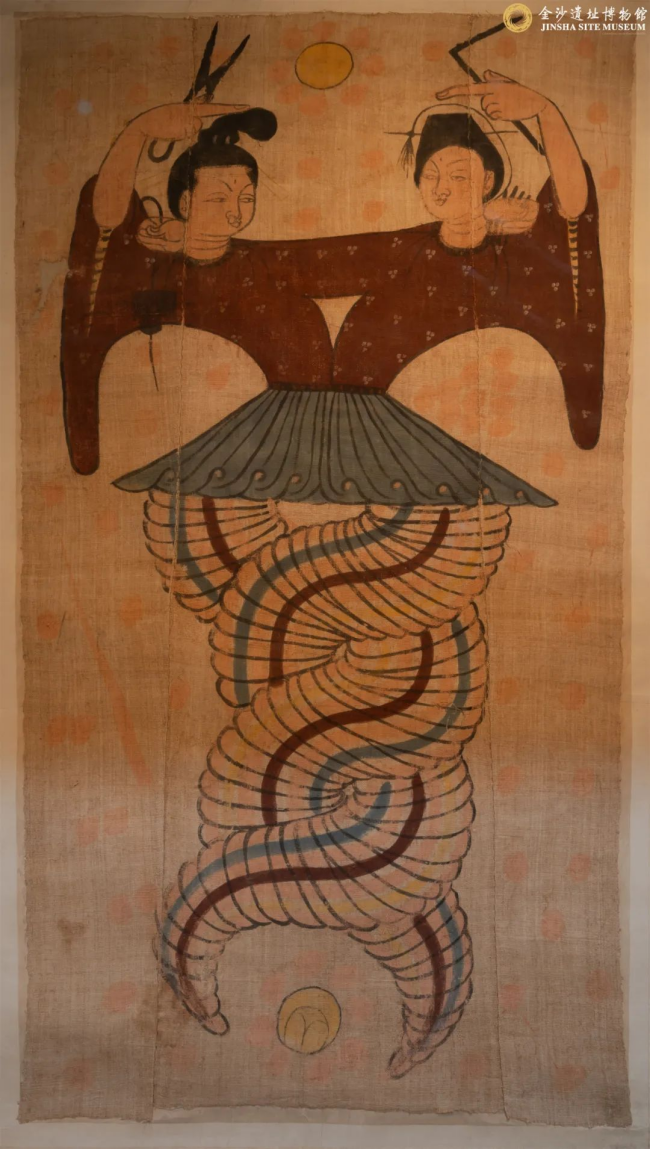 唐代彩繪伏羲女媧麻布畫