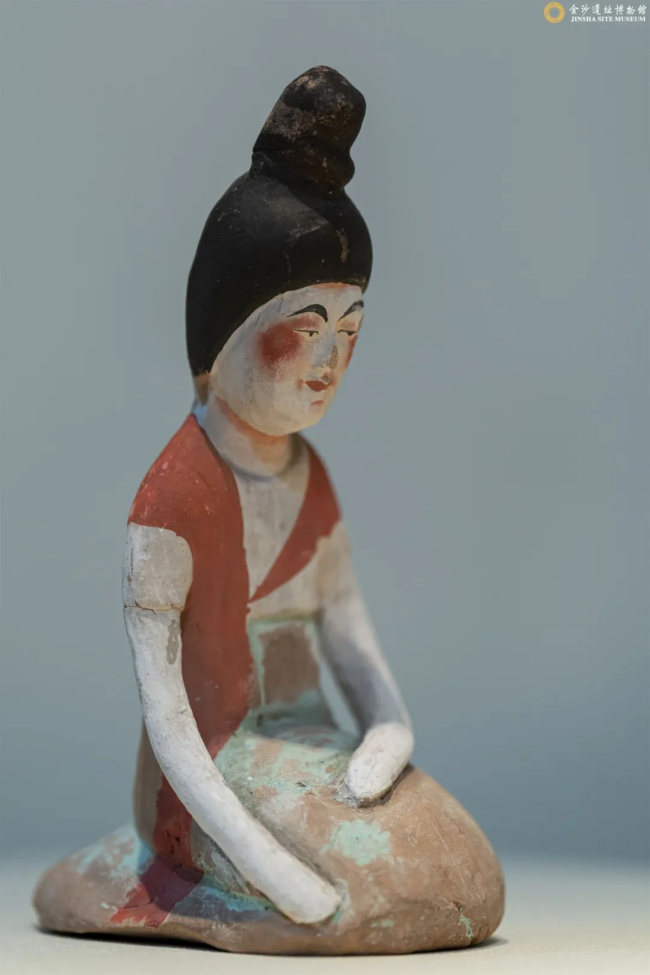 彩繪泥塑跪坐女俑