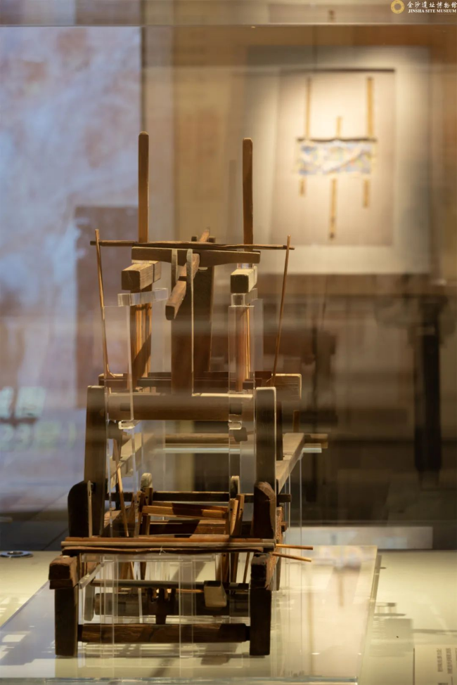在“五星出東方利中國”出土17年后的2012年,成都市天回鎮(zhèn)老官山一座西漢時期的墓地中,首次發(fā)現(xiàn)完整的提花木織機(jī)模型,為世人揭示了“錦官城”中蜀錦織造作坊的縮影。不同于西方以手工為主的毛紡織業(yè)傳統(tǒng),老官山提花織機(jī)運(yùn)用機(jī)械的方法可重復(fù)進(jìn)行批量生產(chǎn),開創(chuàng)了大批量提花織錦生產(chǎn)的先河,為絲綢之路上的絲綢貿(mào)易奠定了技術(shù)基礎(chǔ)。而老官山漢墓出土的織機(jī)模型,是截至目前世界上發(fā)現(xiàn)最早的提花織機(jī)模型,填補(bǔ)了中國乃至世界紡織史和科技史的空白。