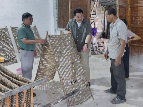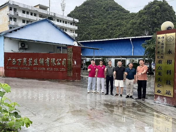 劉吉平還來到馬山縣金釵鎮(zhèn)的廣西萬贏繭絲綢有限公司,走訪調(diào)研華南農(nóng)業(yè)大學(xué)永根科技站的建設(shè)。作為學(xué)校在廣西設(shè)立的第一個與蠶桑產(chǎn)業(yè)合作的永根科技站,希望通過產(chǎn)學(xué)研結(jié)合的方式,帶動企業(yè)及其周邊蠶桑絲綢產(chǎn)業(yè)發(fā)展,提升種桑養(yǎng)蠶技術(shù),帶動農(nóng)民實現(xiàn)增產(chǎn)增收。