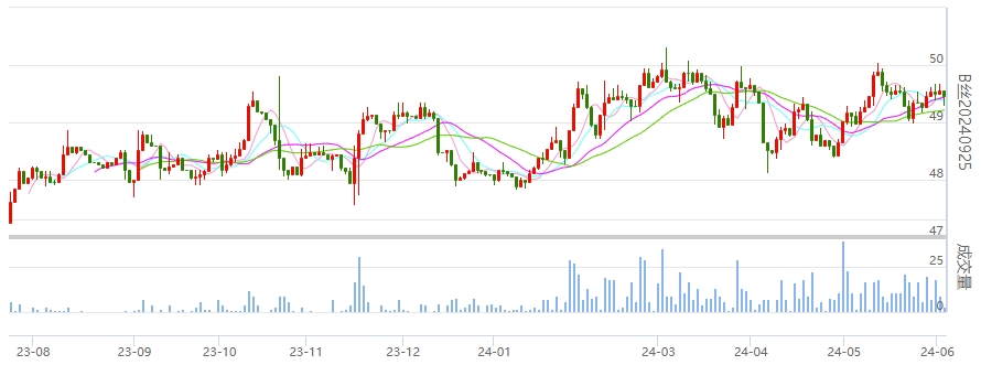 今日(周二)生絲各遠近合約小幅盤整。生絲指數(shù)連續(xù)多日上漲后縮量小幅盤整,今日微跌仍收于60日均線之上。主力合約240925合約延續(xù)震蕩調(diào)整態(tài)勢,250325合約昨日到達前期高位今日回落調(diào)整,后續(xù)能否突破有待觀望。
