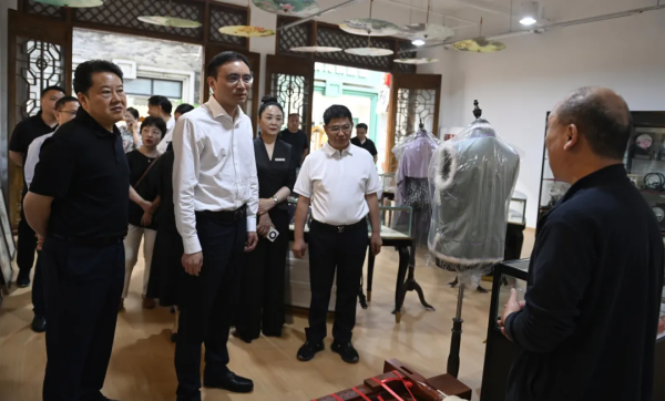 2024年6月4日,成都市新都區(qū)委書記王忠誠(chéng)帶隊(duì)前往錦門蜀錦蜀繡產(chǎn)業(yè)核心發(fā)展基地,就推進(jìn)蜀錦蜀繡的非遺傳承與發(fā)展進(jìn)行調(diào)研,區(qū)人大主任吳彬、區(qū)委常委宣傳部長(zhǎng)文靜、區(qū)人大副主任伍濤和區(qū)委辦公室、區(qū)人大常委會(huì)辦公室、區(qū)發(fā)改局、區(qū)文廣體旅局、區(qū)商務(wù)局等區(qū)級(jí)相關(guān)部門主要負(fù)責(zé)人以及三河街道黨工委副書記參加調(diào)研和座談會(huì)。