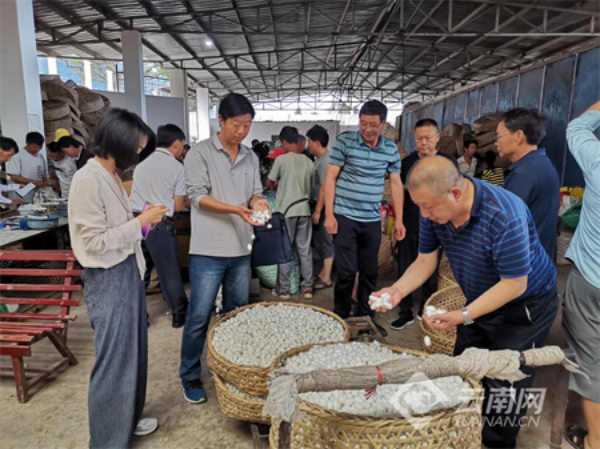 近日,云南省巧家縣長江絲綢公司蠶繭收購站春繭收購一片繁忙景象,蠶農(nóng)們臉上露出了笑容。巧家縣白鶴灘街道舊營村養(yǎng)蠶大戶彭文斌興奮地說:“今年的這種蠶好養(yǎng),發(fā)育整齊、不得病、繭子還大,我家第一批養(yǎng)了6張蠶就賣了將近2萬元,這要感謝科技特派團專家的指導(dǎo)哦?!?/p>