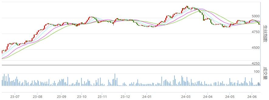 今日(周四)盤面生絲遠(yuǎn)近合約小幅收紅,呈窄幅震蕩態(tài)勢。成交一般。