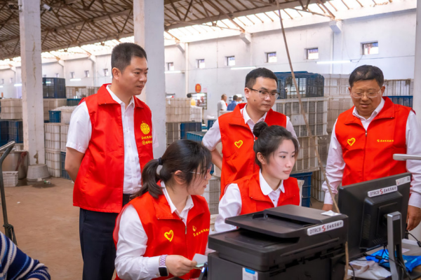 在收購現(xiàn)場,該行領(lǐng)導(dǎo)班子一邊指揮黨員先鋒隊成員開展服務(wù),現(xiàn)場查看信息校驗、系統(tǒng)錄入的實際情況,一邊與蠶繭站工作人員和蠶農(nóng)親切交談,主動詢問桑蠶養(yǎng)殖情況、春繭銷售行情以及金融服務(wù)需求。