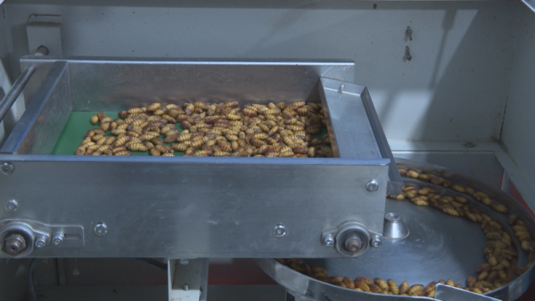 眼下這批蠶是該公司今年飼育的第二批蠶子,這批蠶寶寶已經(jīng)進(jìn)入飼育的第七天,再過3天左右,所有的蠶寶寶將開始吐絲結(jié)繭。采訪中,管理人員張舒舒算了一筆經(jīng)濟(jì)賬?!叭绻覀儼凑丈弦慌倪@個(gè)產(chǎn)量來算的話,一張是130斤,15張可以結(jié)繭2000斤左右,價(jià)格是35一斤,我們現(xiàn)在這一批15張可以將近達(dá)到7萬塊錢?!睆埵媸嬲f道。