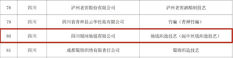 近日,文旅部公布了2023—2025年國家級非物質(zhì)文化遺產(chǎn)生產(chǎn)性保護(hù)示范基地名單,四川省僅4家企業(yè)和單位上榜。其中,南充市四川銀河地毯有限公司的地毯織造技藝(閬中絲毯織造技藝)成功入選。