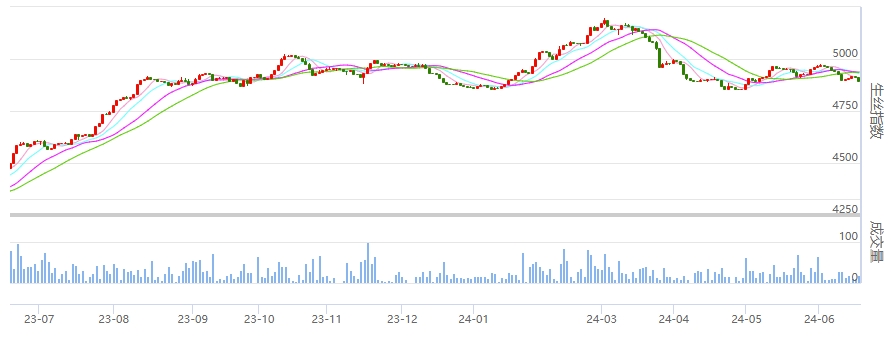 今日盤面各遠近合約生絲價格有所收綠,成交一般,現(xiàn)貨面上,進入6月淡季后,生絲與面料市場同樣有所走淡。
