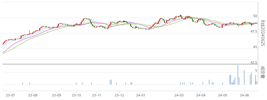 今日(2024年06月20日,周四)中國繭絲綢交易市場生絲電子指數(shù)微漲0.08%報于4900.50點。B絲(商檢4A級生絲):240625合約報平收于49.14萬元;240925合約上漲0.21萬元報收于48.72萬元;250325合約上漲0.12萬元報收于49.29萬元。