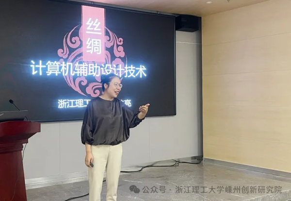 浙江理工大學(xué)嵊州創(chuàng)新研究院院長、浙江理工大學(xué)蘇淼教授講授了第一課。蘇教授以《中國絲綢藝術(shù)與國潮風(fēng)設(shè)計》為主題,與學(xué)員們分享了她的深刻思考,探討如何在絲綢設(shè)計領(lǐng)域?qū)崿F(xiàn)創(chuàng)新與發(fā)展。課程重點(diǎn)講述如何將中國傳統(tǒng)元素融入現(xiàn)代紡織面料設(shè)計當(dāng)中,以創(chuàng)造出既具有文化底蘊(yùn)又符合現(xiàn)代審美的設(shè)計作品,進(jìn)一步提升絲綢產(chǎn)品相關(guān)企業(yè)的設(shè)計水平,有效推動產(chǎn)業(yè)的創(chuàng)新發(fā)展。