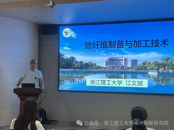 浙江理工大學(xué)江文斌教授為學(xué)員帶來了《桑蠶絲纖維制備與加工技術(shù)》的精彩課程。江教授從制絲及工藝流程、蠶繭的形成與特性、蠶絲纖維加工技術(shù)與生絲品質(zhì)與質(zhì)量分析等角度出發(fā),講述了新的生產(chǎn)方式為企業(yè)發(fā)展帶來的影響,切實(shí)地為企業(yè)提供了新的技術(shù)思路。