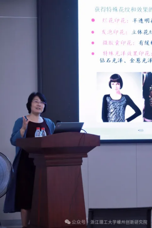 浙江理工大學(xué)鄭今歡教授為學(xué)員帶來了題為《絲綢染整技術(shù)的發(fā)展》的精彩課程。課程旨在讓學(xué)員了解真絲精練、染色、印花和后整理工藝的發(fā)展及現(xiàn)代絲綢染整技術(shù),在工作中如何根據(jù)產(chǎn)品特點(diǎn)合理選擇和綜合運(yùn)用印染工藝,提高產(chǎn)品的附加值,拓寬其應(yīng)用領(lǐng)域。