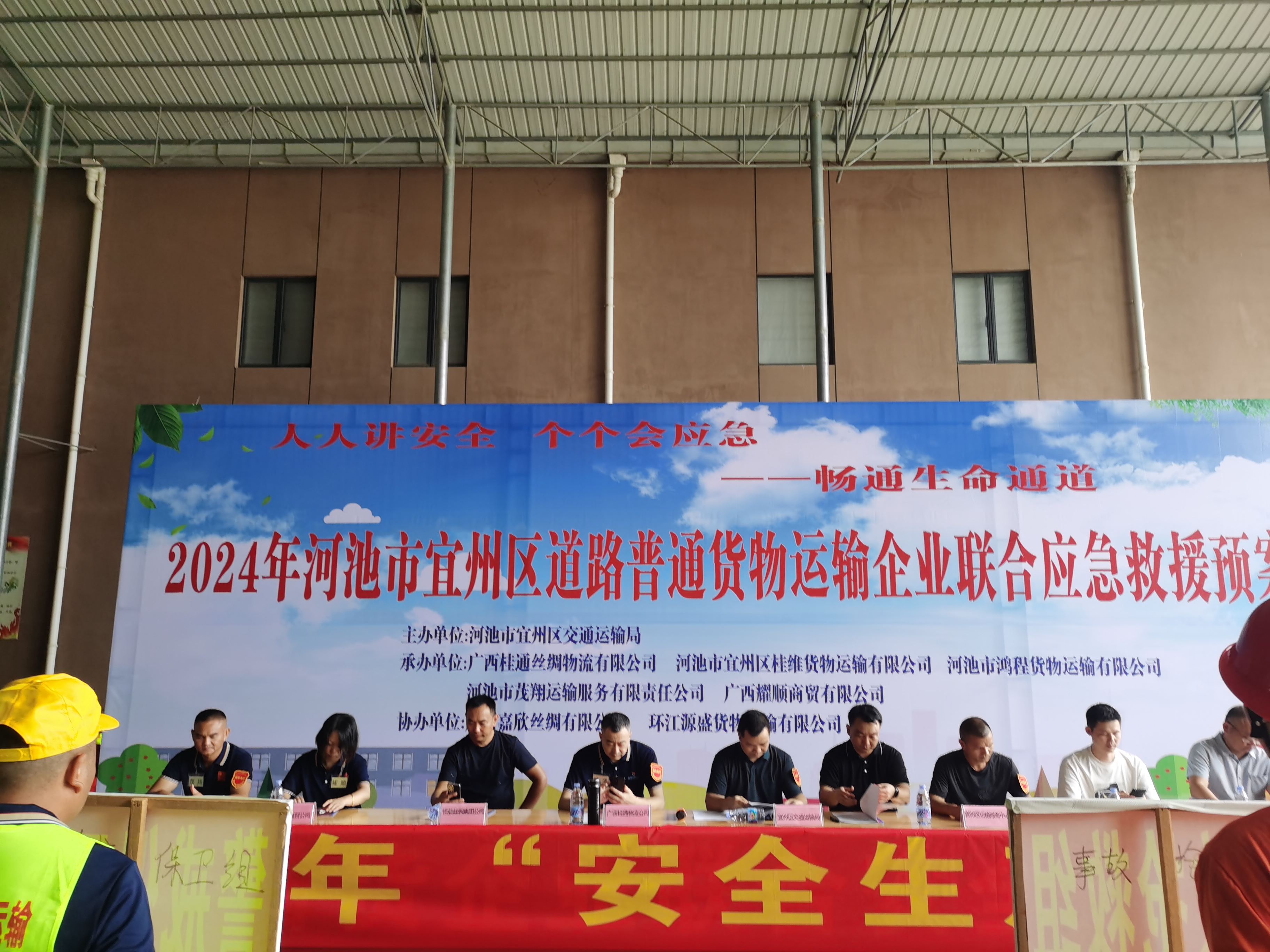 為認(rèn)真執(zhí)行河池市宜州區(qū)2024年安全生產(chǎn)月活動(dòng)方案,進(jìn)一步檢驗(yàn)和完善各道路貨物運(yùn)輸公司對(duì)突發(fā)事故的安全防范意識(shí)和應(yīng)急處理能力,以及提高貨物運(yùn)輸企業(yè)對(duì)突發(fā)事件的快速反應(yīng)速度和應(yīng)急救援能力,由河池市宜州區(qū)交通運(yùn)輸局、河池市宜州區(qū)道路運(yùn)輸服務(wù)中心主辦,廣西桂通絲綢物流有限公司等5家普通貨物運(yùn)輸企業(yè)聯(lián)合承辦,廣西嘉欣絲綢有限公司和環(huán)江源盛貨物運(yùn)輸有限公司共同協(xié)辦的2024年道路運(yùn)輸生產(chǎn)安全事故應(yīng)急預(yù)案演練活動(dòng)于今天(2024年7月1日)在廣西嘉欣絲綢園內(nèi)舉行并圓滿完成。本次活動(dòng)還特別邀請(qǐng)了廣西恒業(yè)、廣西嘉聯(lián)、宜州宏基等多家繭絲綢企業(yè)共同參與。