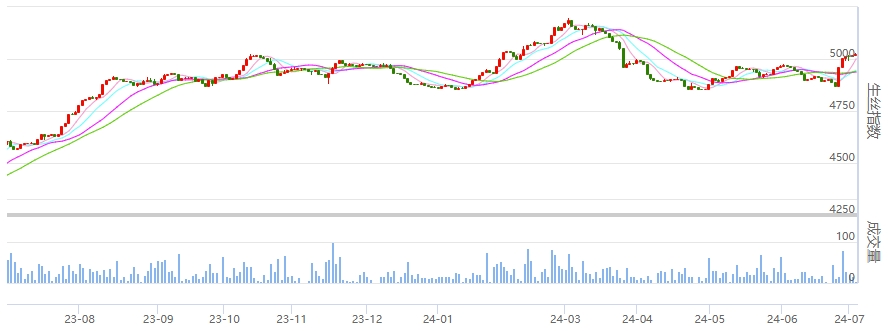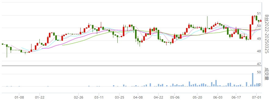 B絲40/44-240725合約上漲0.12萬元報48.42萬元;A絲20/22-240725合約上漲0.15萬元報51.72萬元。(更多行情詳情到首頁進(jìn)行查看)