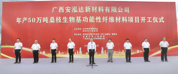 7月3日,廣西安泓達新材料有限公司年產(chǎn)50萬噸桑枝生物基功能性纖維材料項目開工儀式在河池大任產(chǎn)業(yè)園區(qū)舉行。河池市委書記秦春成出席并宣布項目開工。