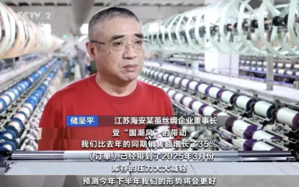 面料門店的負責人表示,他們主要將生絲加工成提花面料,自從“國風”服飾流行以來,提花面料的訂單已經(jīng)排到年底。