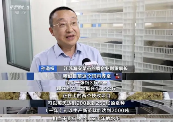 江蘇海安被稱為“中國繭絲綢之鄉(xiāng)”,記者來到海安了解到,今年的春繭收購工作在6月中旬結束。由于養(yǎng)殖技術提升,今年蠶繭的單產(chǎn)創(chuàng)下歷史新高,收購價也比去年上漲11%。