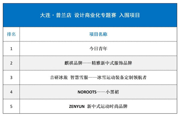 經(jīng)評(píng)委現(xiàn)場(chǎng)評(píng)審并綜合推薦,以下5個(gè)參賽項(xiàng)目從大連普蘭店設(shè)計(jì)商業(yè)化專題賽中脫穎而出,獲得“雙創(chuàng)優(yōu)勝獎(jiǎng)”,并晉級(jí)大賽總決賽。大賽組委會(huì)現(xiàn)將晉級(jí)項(xiàng)目予以通告: