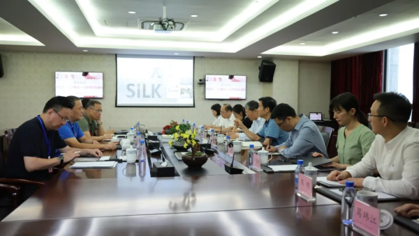 中國(guó)絲綢協(xié)會(huì)副會(huì)長(zhǎng)、集團(tuán)董事長(zhǎng)周?chē)?guó)建,黨委書(shū)記、總裁徐鴻,財(cái)務(wù)總監(jiān)周駿和貿(mào)易管理總監(jiān)張韻超參加座談交流。