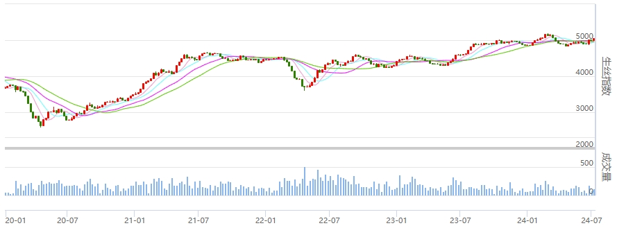 在收儲(chǔ)主導(dǎo)下,本周4A級(jí)生絲電子指數(shù)累計(jì)上漲0.94%報(bào)收于5055點(diǎn)。