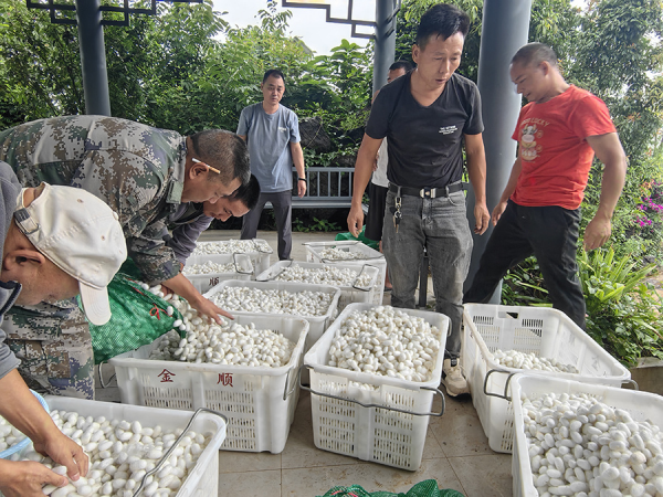 近日,云南省臨滄市耿馬傣族佤族自治縣邊境村(社區(qū))蠶繭收購現場熱鬧非凡,村民排著長隊交售白花花的蠶繭,臉上滿是豐收的喜悅。