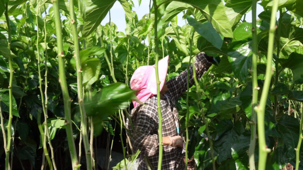 在永仁縣維的鄉(xiāng)維的村查苴組,成片的桑園長得郁郁蔥蔥,肥嫩的桑葉掛滿枝頭,蠶農(nóng)們正在忙著采摘。養(yǎng)蠶大戶毛向明一家已經(jīng)種桑養(yǎng)蠶17年,家里的桑園面積達(dá)到了40畝,每年他可以養(yǎng)出5批蠶。今年他家養(yǎng)殖春蠶7張、夏蠶13張,兩批蠶共產(chǎn)出蠶繭1098公斤,收入達(dá)到了7.5萬元。種桑養(yǎng)蠶已經(jīng)成為毛向明一家增收致富的“法寶”。