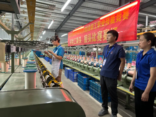 7月19日,由廣西梧州市總工會、蒙山縣人民政府主辦,蒙山縣總工會、蒙山縣科技工業(yè)信息化和商務局、蒙山縣工業(yè)園區(qū)管理委員會共同承辦以“梧有技能·產(chǎn)業(yè)振興”為主題的2024年梧州市紡織(織綢)業(yè)職工職業(yè)技能競賽在廣西蒙山大染坊絲綢有限公司拉開帷幕。梧州市總工會黨組成員、副主席楊振中出席開幕式并宣布技能競賽開幕。蒙山縣人民政府副縣長梁潔銘在競賽開幕式上致辭。